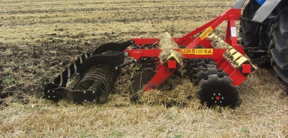 Борона дисковая БДМВ "КОРТЕС" на стойках с эластомерами, шириной захвата от 1,8 до 9,1 метров применяется для уничтожения сорняков, поверхностного рыхления и предпосевной подготовки почвы без предварительной вспашки, измельчения и заделки в почву растительных остатков, разделки пластов почвы, обработки после уборки толстостебельных культур, с одновременным прикатыванием обработанной почвы для сохранения влаги в почве после уборки урожая.